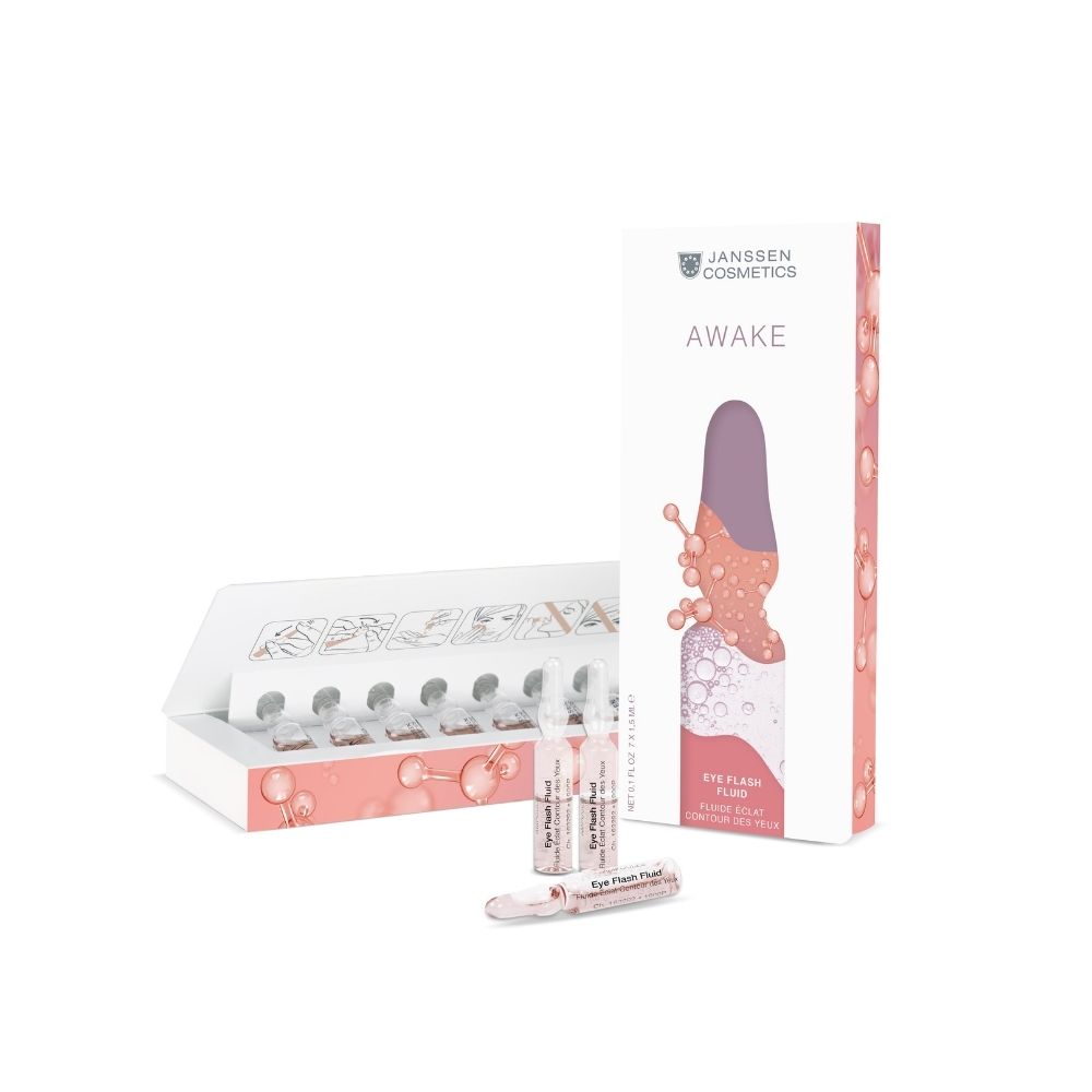 Az Eye Flash Fluid – (7×1,5ml-es kiszerelésben AWAKE –„Ébredés” néven szereplő ) ampullák egy gyorsan ható, hidratáló és felfrissítő szemkörnyék-kezelést kínálnak. A különleges hialuronsav‑kombináció és a peptid komplex formulája azonnali simító és ragyogó hatást vált ki, valamint a szem alatti duzzanat csökkentését eredményezi, «ébredés utáni» érzést nyújtva a szemkörnyéknek.